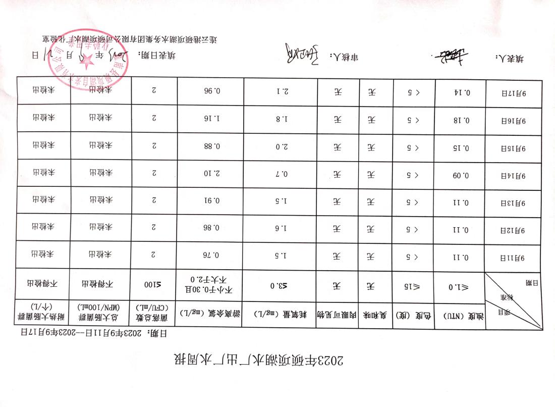 2023年硕项湖水厂出厂水水质周报(9.11-9.17)